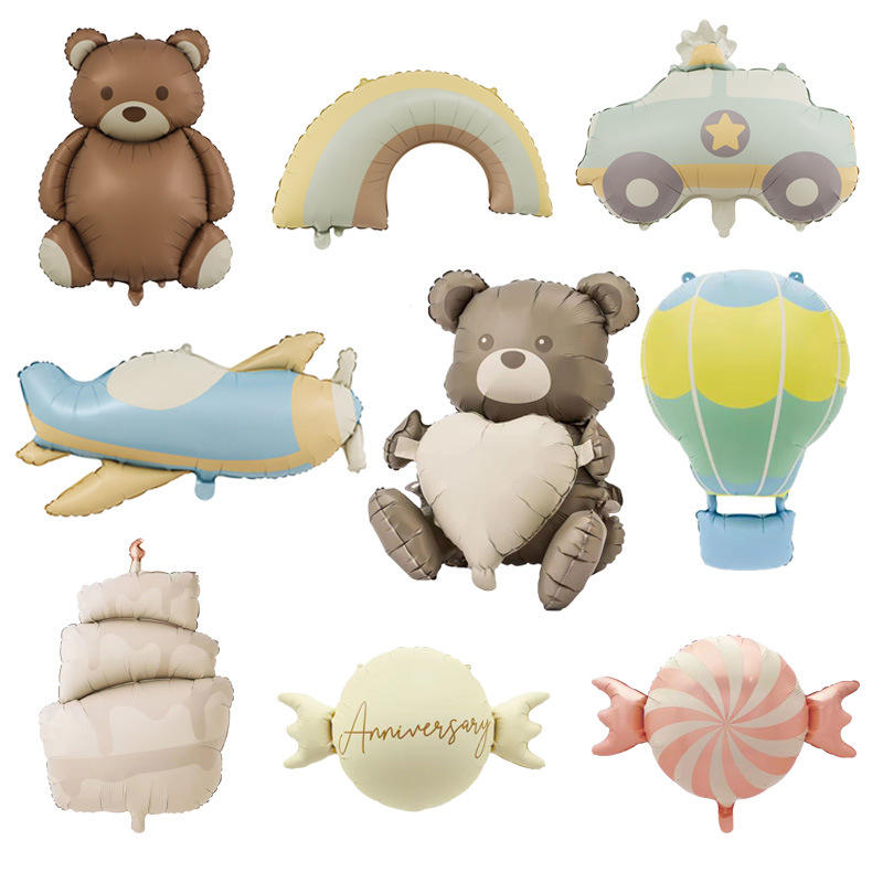 2024 all'ingrosso nuovo Design di colore opaco Mylar disegno dei cartoni animati giocattoli per bambini palloncino di compleanno con forma di torta di orso di Design
