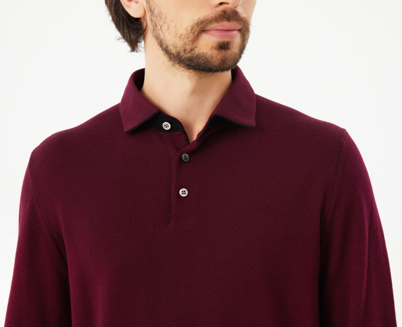 Wholesale 2025 New Design Merino Wool Cashmere Men's Knitted Polo Neck Sweater Custom Logo Long Sleeve Polo Shirt for Autumn