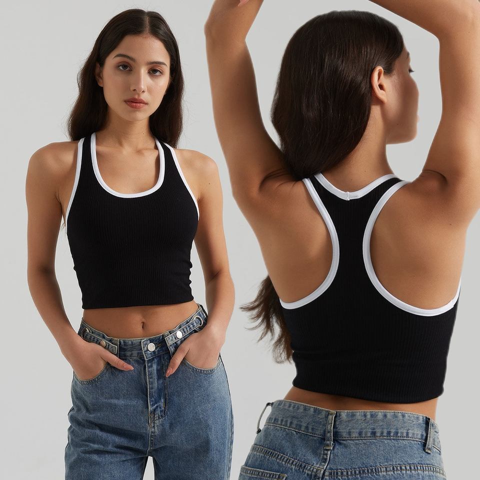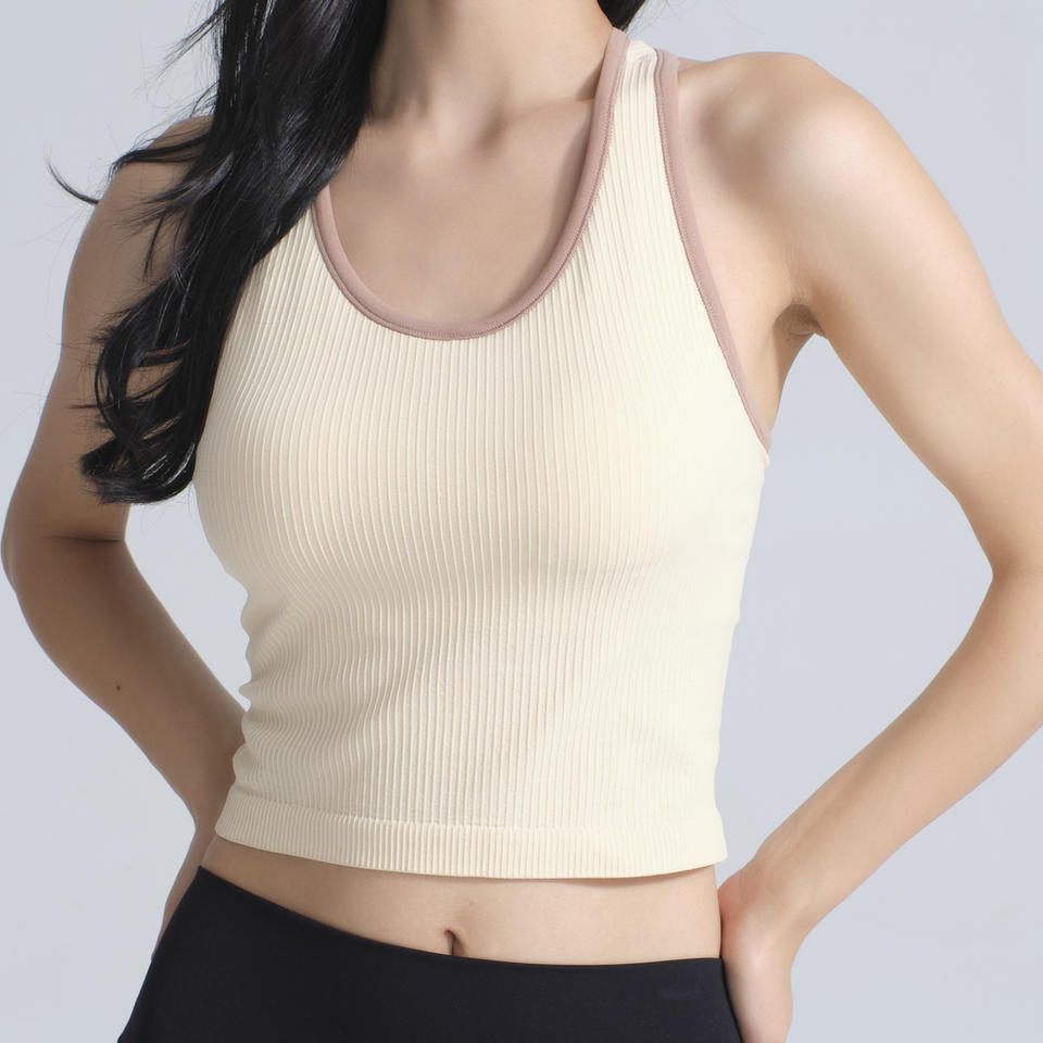 Commercio all'ingrosso reggiseno sportivo a coste con Splicing di colore 2025 imbottito con scollo a U comodo di lusso Slim Fit tutto in partita canotta a coste Racerback
