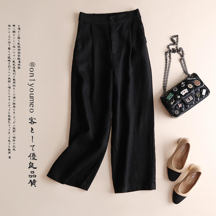 Wholesale 2025 Women Girls Lady Fashion Loose Pants Linen Cotton High Waist Elastic Waist OL Trousers Office Casual Long Pants