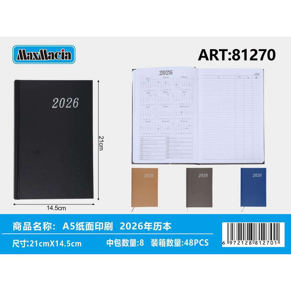 Commercio all'ingrosso 2026 Planner Notebook alla rinfusa formato A5 rilegatura termica 21cm X 145cm cartone e copertina di carta Offset diario