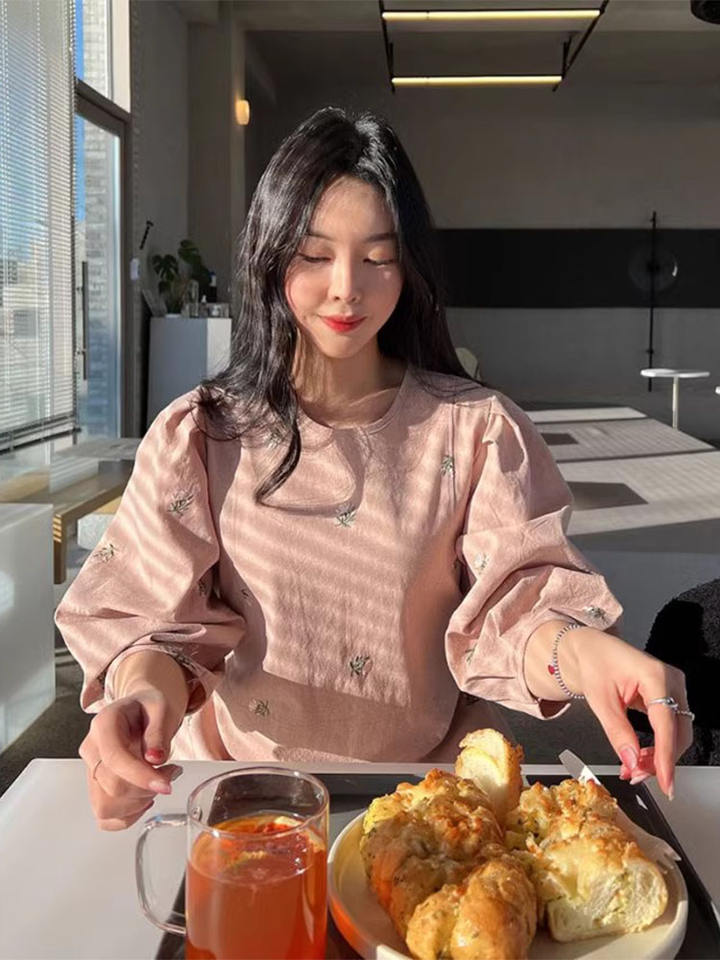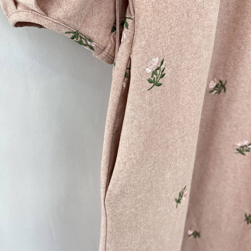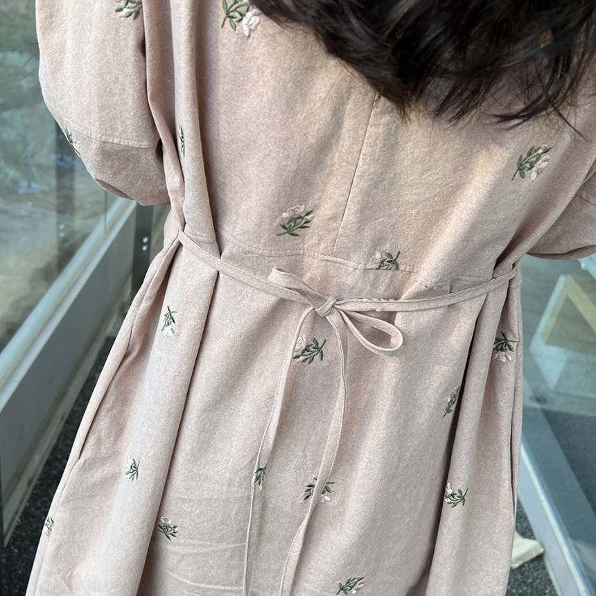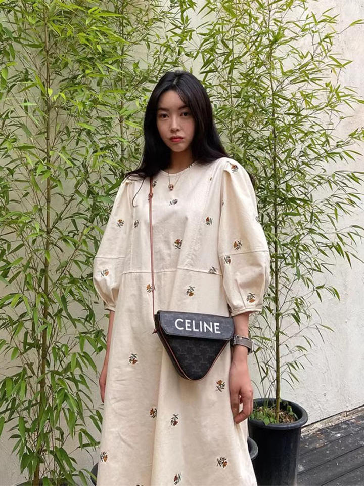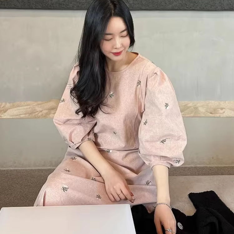 Abito da donna all'ingrosso Primavera 2026 Nuovo Stile Dolce e Rinnovante con Ricamo Artigianale a Margherite, Vestibilità Ampia e Maniche a Lanterna Spaccate