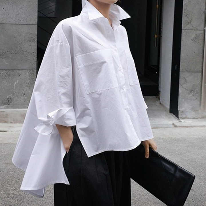 Camicetta Bianca a Maniche Lunghe Stile Commuter, Casual, Ampia e Irregolare, alla Moda, Taglie Forti, Collezione Primavera Estate 2026 - Vendita all'Ingrosso