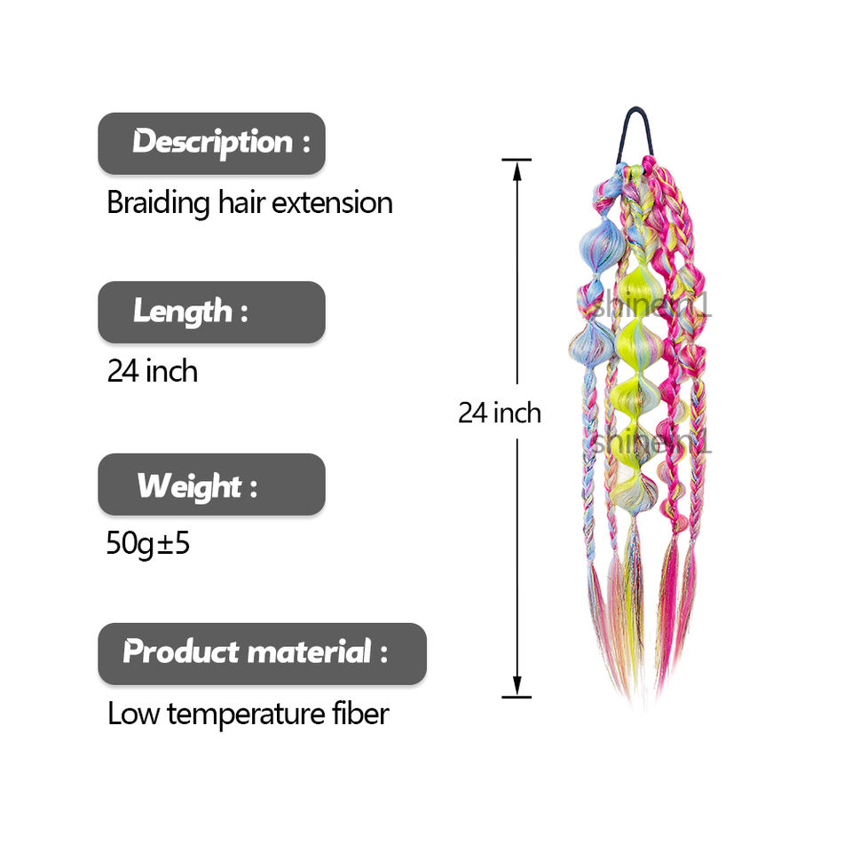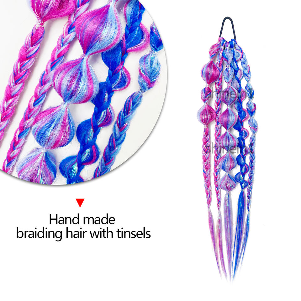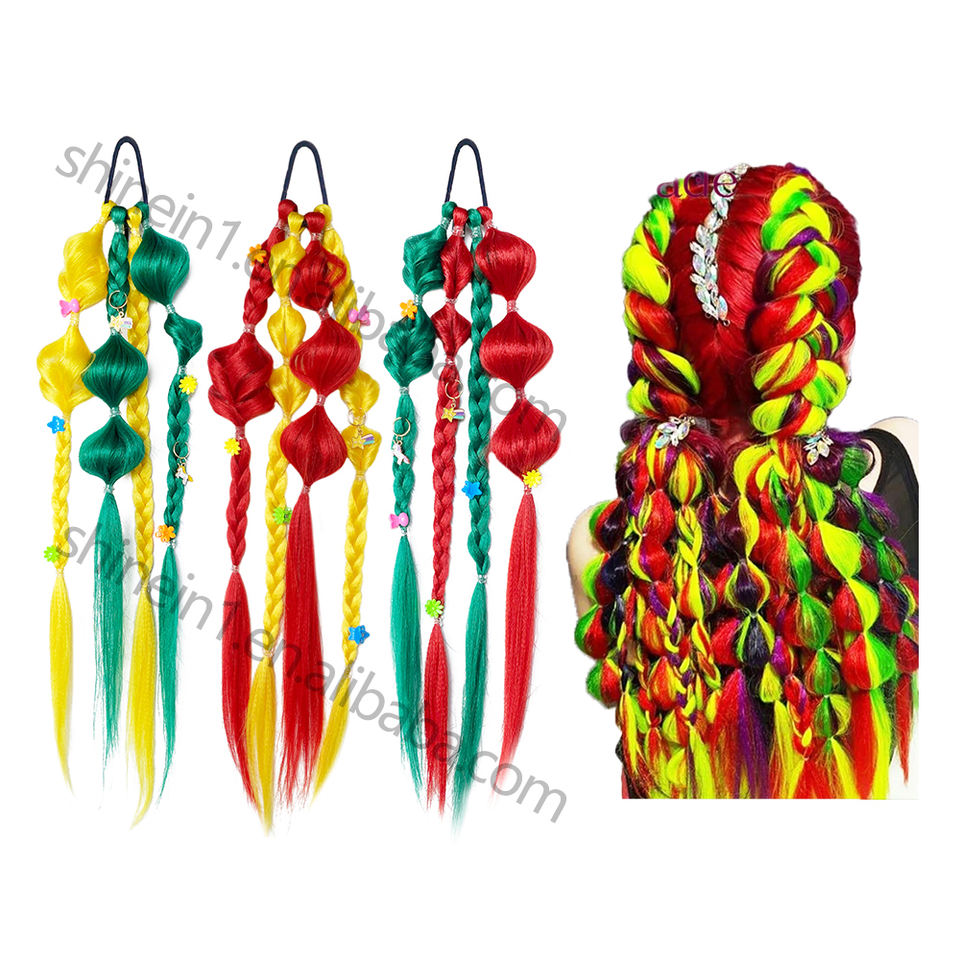 Extension Coda di Cavallo a Bolle Intrecciata a Mano Colorata 24 Pollici all'Ingrosso con Elastico per Festival e Rave