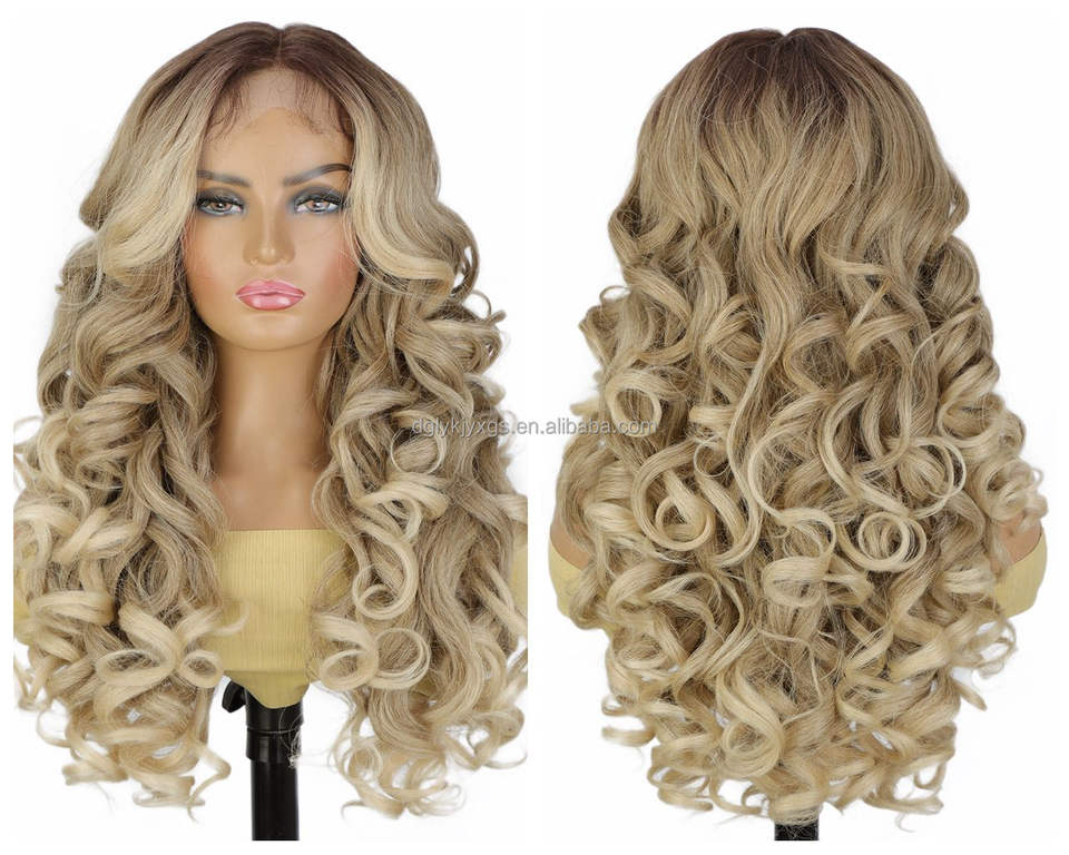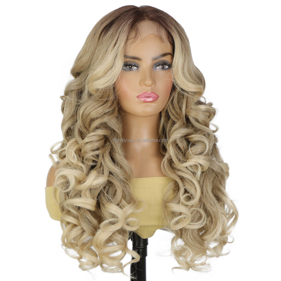 All'ingrosso 26 pollici capelli sintetici fatti a mano all'uncinetto 13x6 pizzo anteriore parrucca marrone chiaro sciolto onda profonda parrucca per le donne