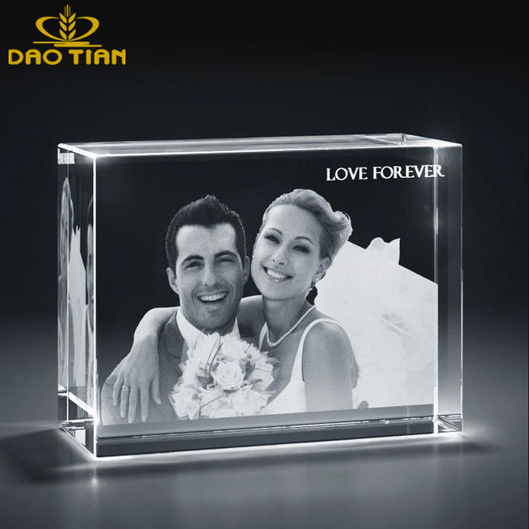 Cubo di foto di cristallo laser 2d/3d all'ingrosso vuoto di cristallo con base a cubo di cristallo a LED per regali romantici o regali di anniversario