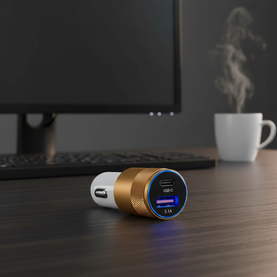 Caricabatterie da Auto USB-C PD 3.1A 5V Portatile per iPhone Samsung e Altri Telefoni, Caricatore USB QC3.0 per Auto