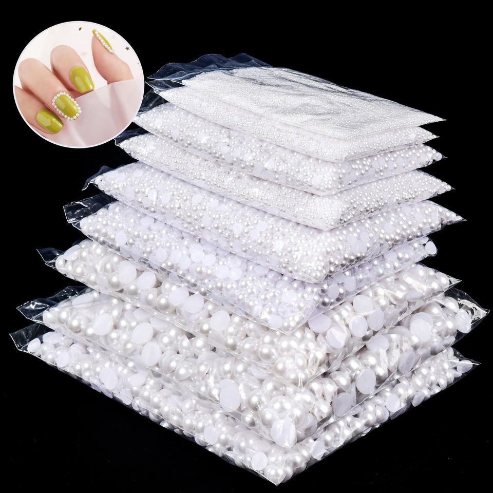 Oleeya Rhinestones flat-back mezze perle ABS 2-14 mm, 60 colori AB, non hotfix per sacchetto per accessori moda e nail art