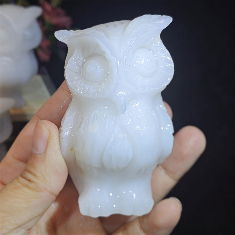Commercio all'ingrosso 3 pollici cristallo animale bramoso bianco gufo di giada pietre curative per la decorazione
