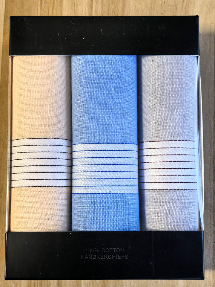 Commercio all'ingrosso 3-Pack classici a righe fazzoletti da taschino da uomo personalizzati 15.7x15.7 pollici comodi fazzoletti di cotone in confezione regalo