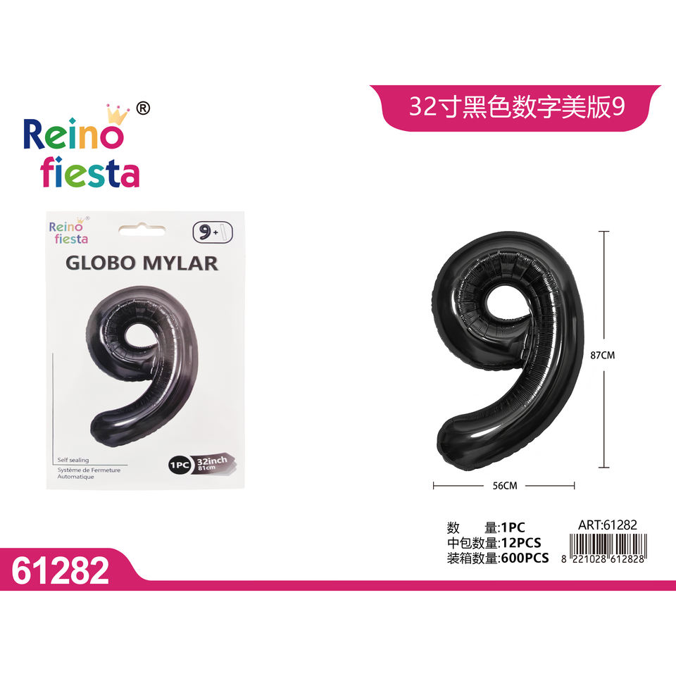 Wholesale 32-Inch Black Number 9 Mylar Balloon for Parties Events for Mother's Day Graduation Chinese New Year with Custom Print
