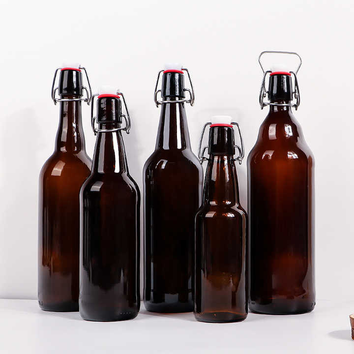 Bottiglia di Birra in Vetro Ambrato da 500 ml con Tappo a Scatto, Vuota, Disponibile all'Ingrosso