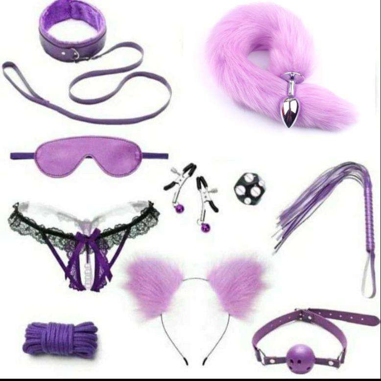 RESTRAINTS, Collar, Rope, spreader bar, Handcuffs, GAG, Blindfold, tickler, Harness, CLAMPS, flogger, legcuffs, Whip, Paddle, Leash, TapeIncluded Components