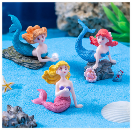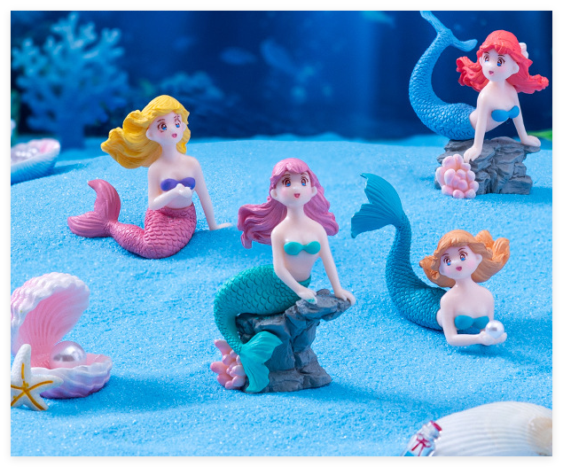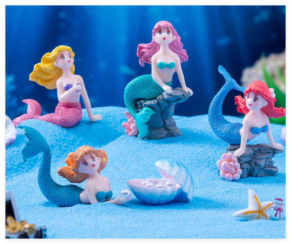 Wholesale 3D Cartoon Ocean Under the Sea Sand Beach Resin Crafts Mini Mermaid Toys Marine Figurine Dollhouse Miniatures for Kids