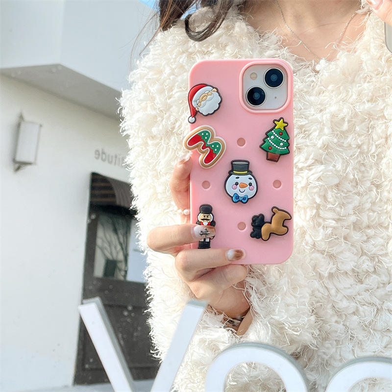 Wholesale 3D Style Young Girls Funny DIY Hole Phone Case with Christmas Charms Luxury 14 15 Pro Max iPhone Case