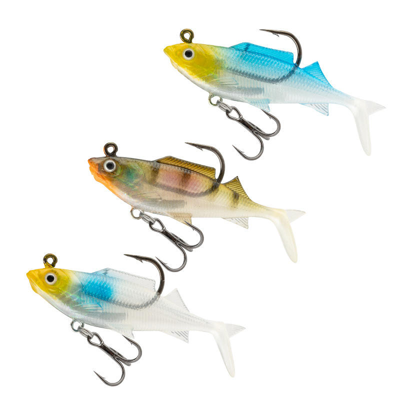 Confezione da 3 esche morbide galleggianti a coda a T con amo triplo per la pesca di persici e lucci in fiume e lago - Vendita all'ingrosso