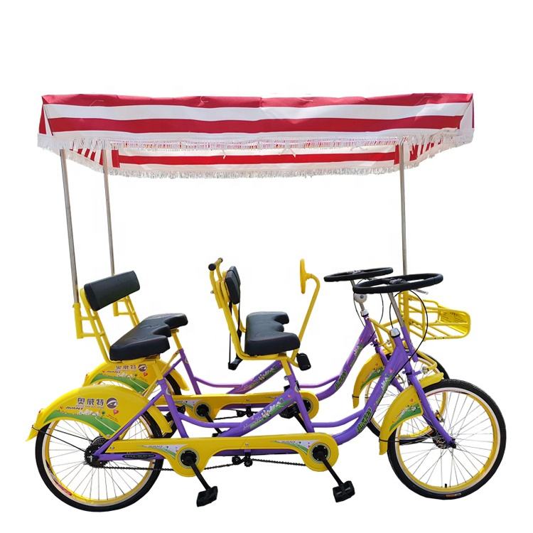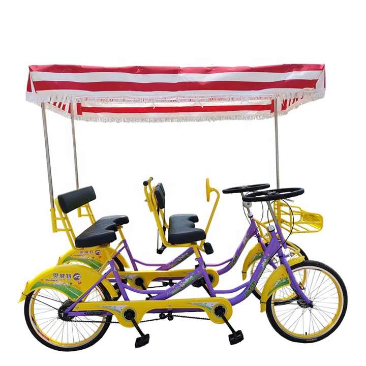 Wholesale 4 Seats for Sightseeing Bikes/Good Quality Family Four People Pedal Surrey Bikes/Road tandem Bicycle 4 Wheels