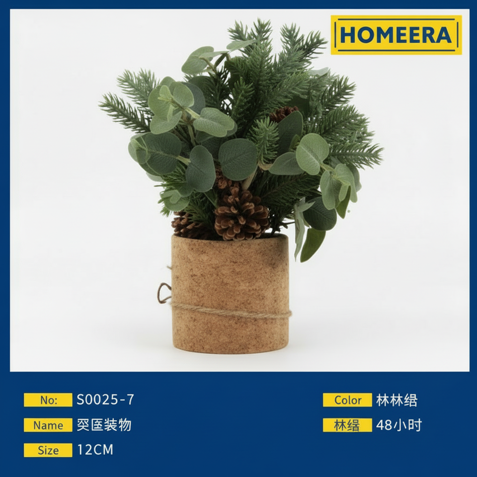 Wholesale 48-Piece Box of Artificial Christmas Potted Plant with Pine Cones and Wooden Base Greenery Product