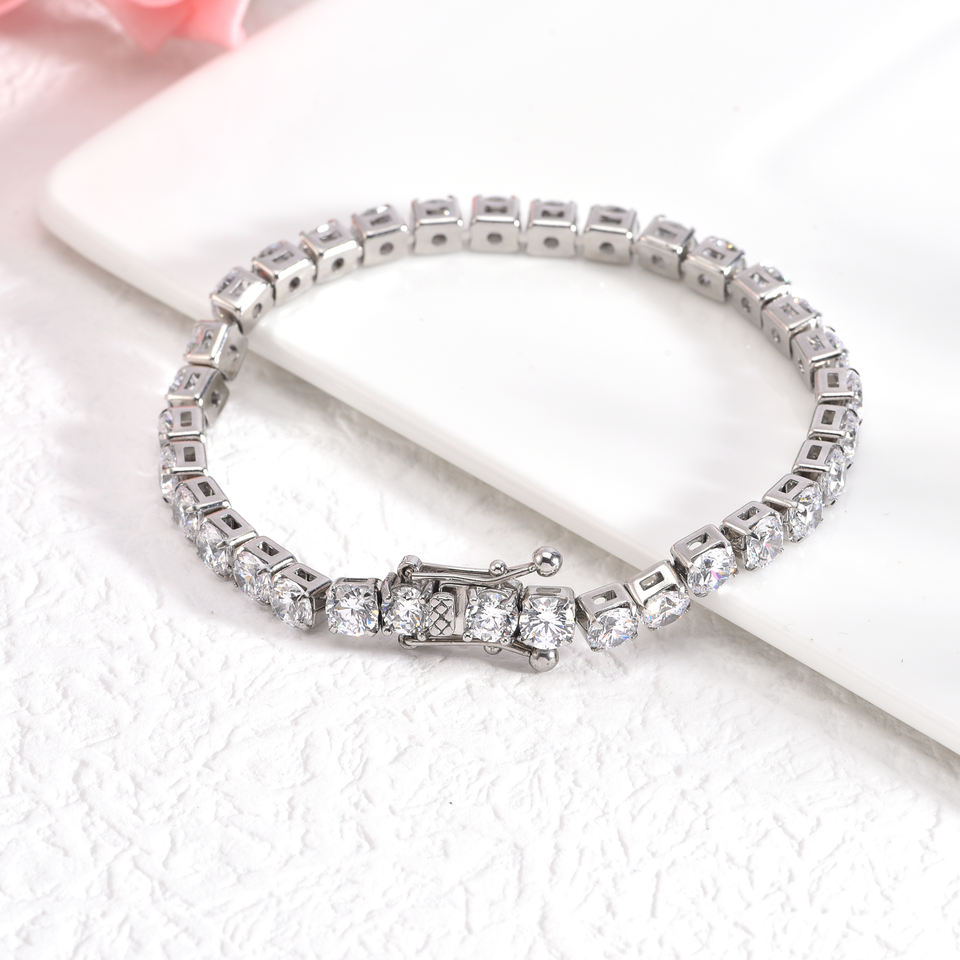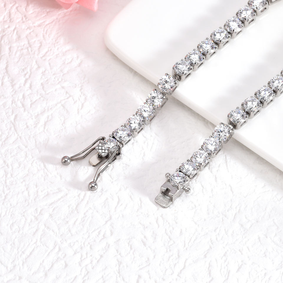Wholesale 5mm Round 5A Zircon Tennis Chain Bracelet with Safety Clasp Stainless Steel Jewelry for Man Woman Gift