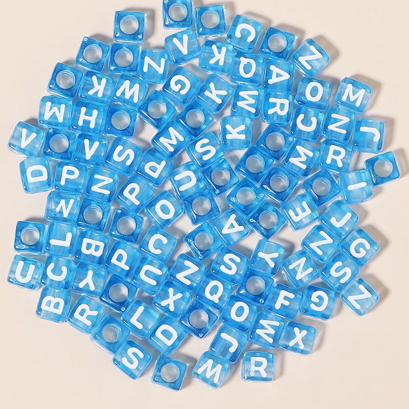 Beads Colour:Transparent blue back + white letters
