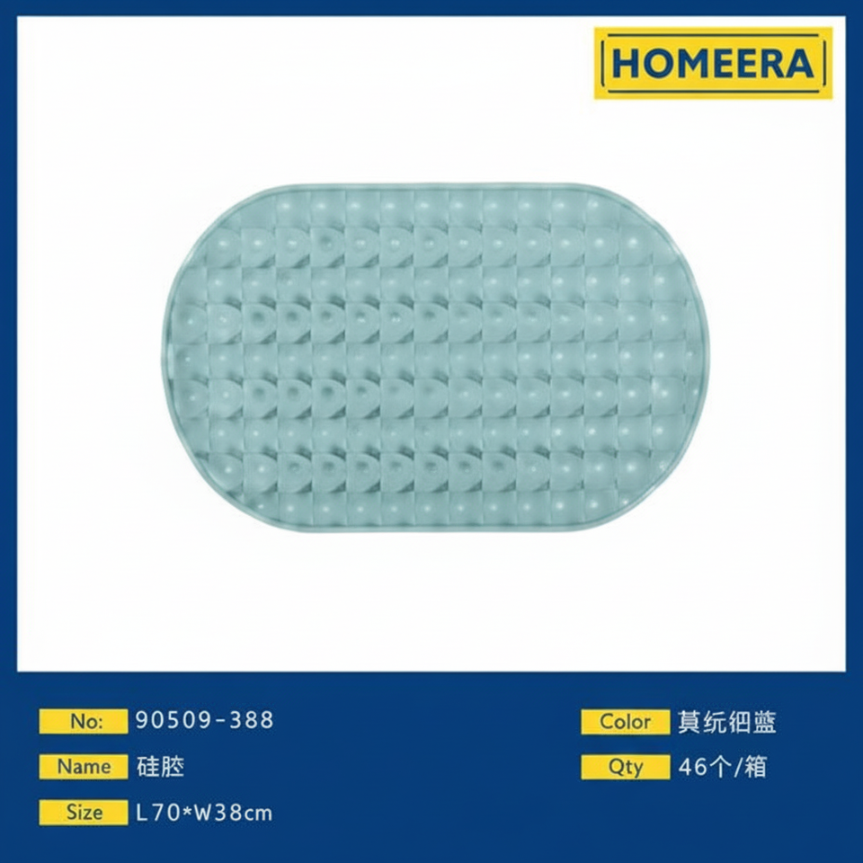 Wholesale 70x39cm Morandi Blue TPE Bath Mat Anti-Slip Microfiber with Plant Print for Bathroom Use