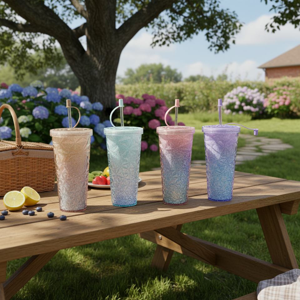 CASAMAX WL AD-0814 Bicchiere in Plastica PC Elegante da 780ml con Coperchio e Cannuccia