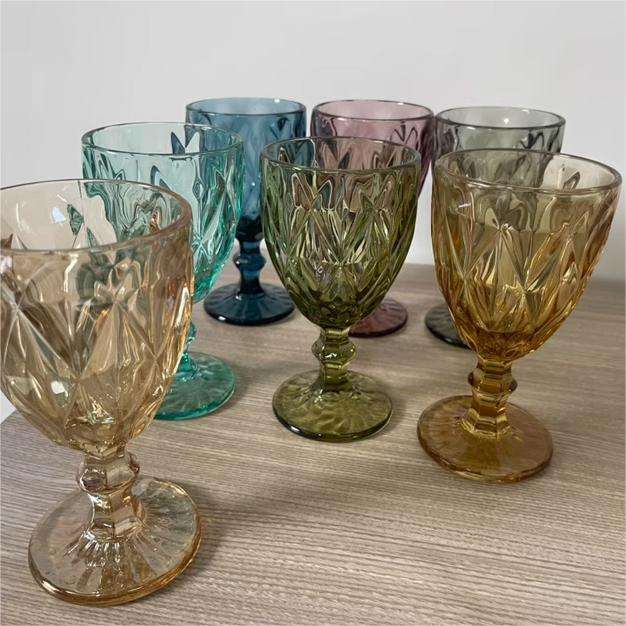 Wholesale 8oz 10oz Glassware Colored Goblet Wine Glasses Water Glass Pressed Blue Glass Goblets