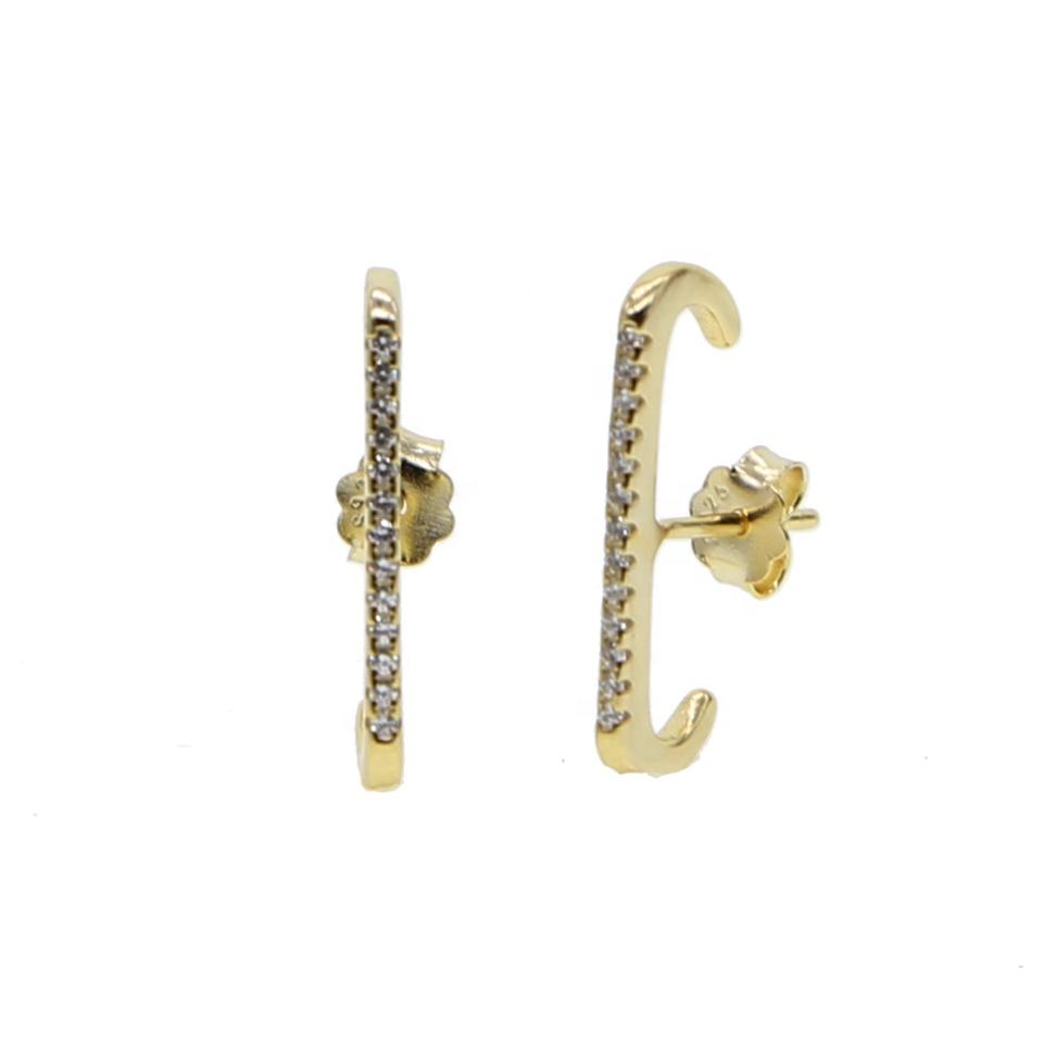 Commercio all'ingrosso 925 argento sterling semplice barra micro pavé cz sottile barra sottile oro placcato oro orecchino per la ragazza