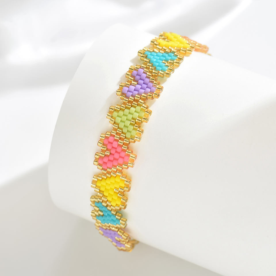 Braccialetti Bohémien Regolabili all'Ingrosso, Fatti a Mano con Perline Miyuki, Motivo Geometrico per Anniversario Femminile