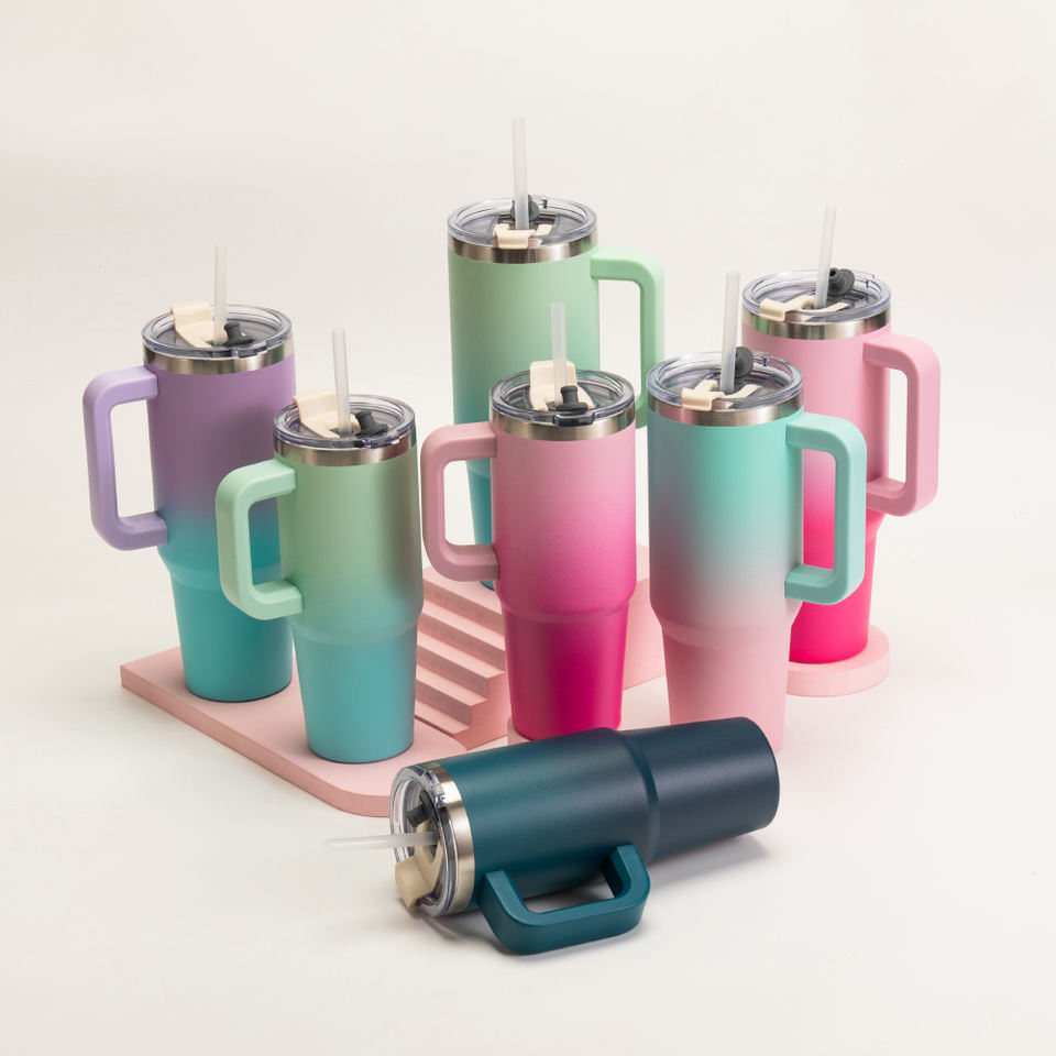 Ingrosso Avventura Vernice Arcobaleno Doppia Parete Manico in Acciaio Inox Boccetta per Bottiglia 30Oz Bicler con Paglia