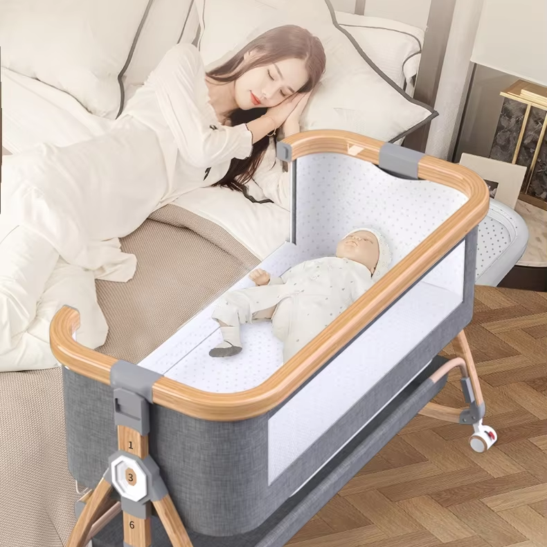 Culla Portatile Pieghevole in Alluminio per Bambini, Lettino per Neonati, Culla da Viaggio con Porta Laterale