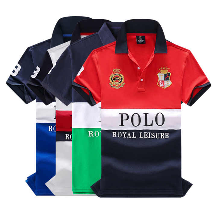 Wholesale America Plus Size Lapel Casual Golf T Shirts 100% Cotton Color Combination Sport Short Sleeve Embroidered Men's Polo