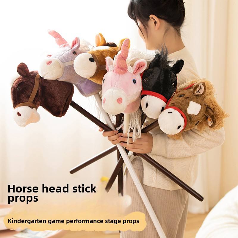Wholesale Animal Head Children Traditional Ride-On Hobby Horse Stick Horse Riding Supports Unicorn Horse Head Stick Plush Toy