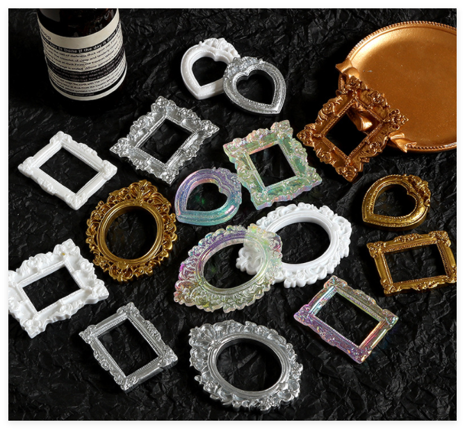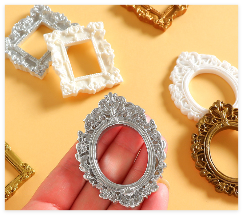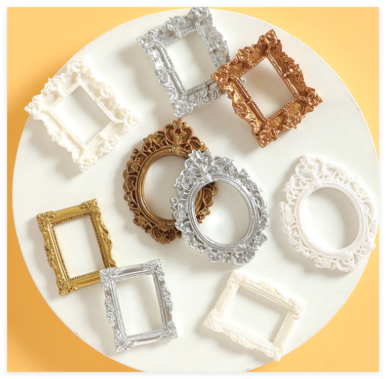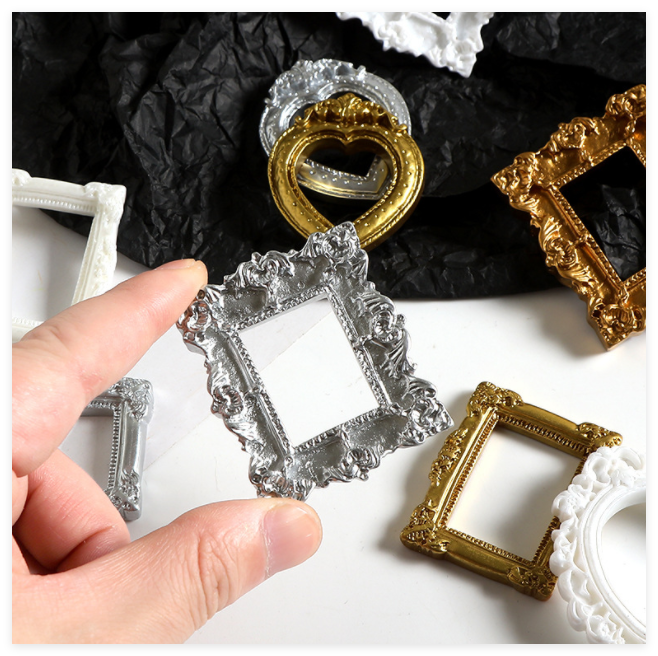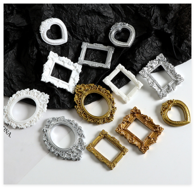 Wholesale Antique Gold White Silver European Vintage Heart square Oval Rectangle Resin Photo Frame Flatback Mini DIY Ornament