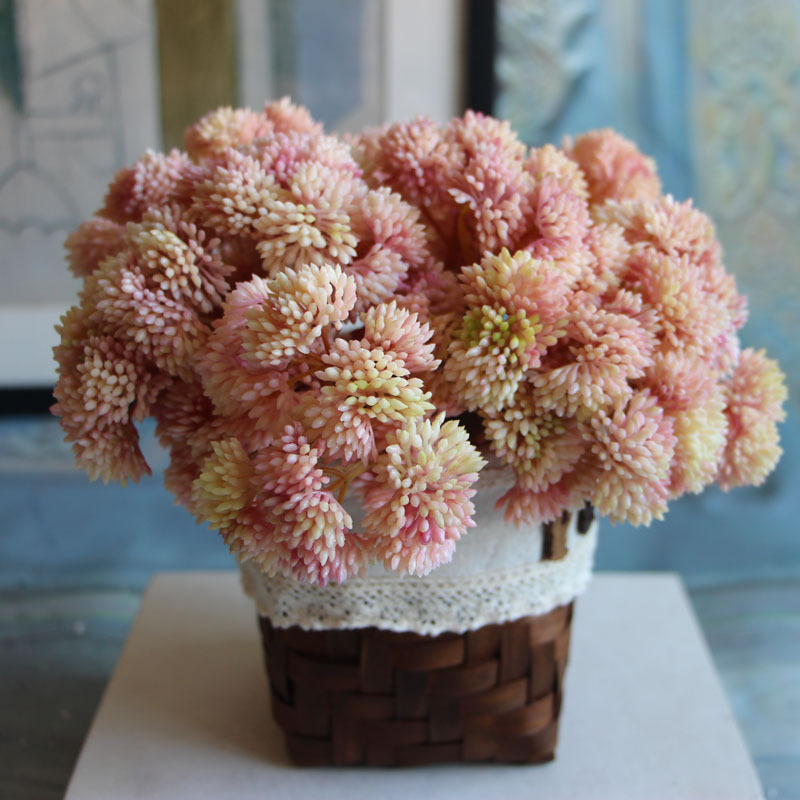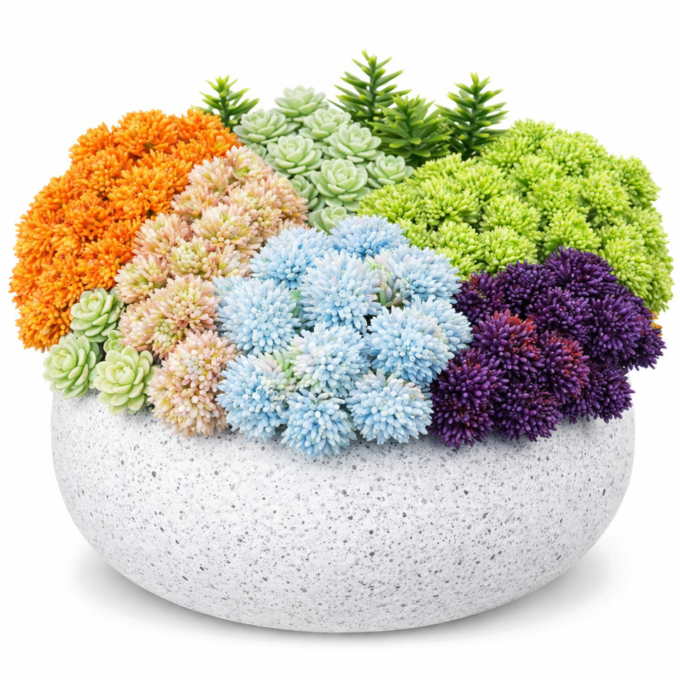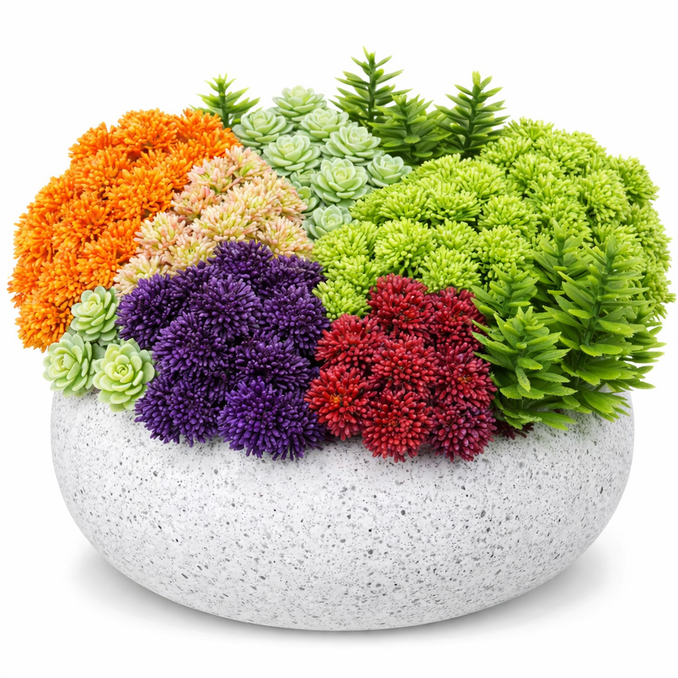 Composizione Floreale Artificiale all'Ingrosso con Bacche di Riso Finte Multicolore in Vaso Rotondo Bianco Maculato per Decorazione Domestica