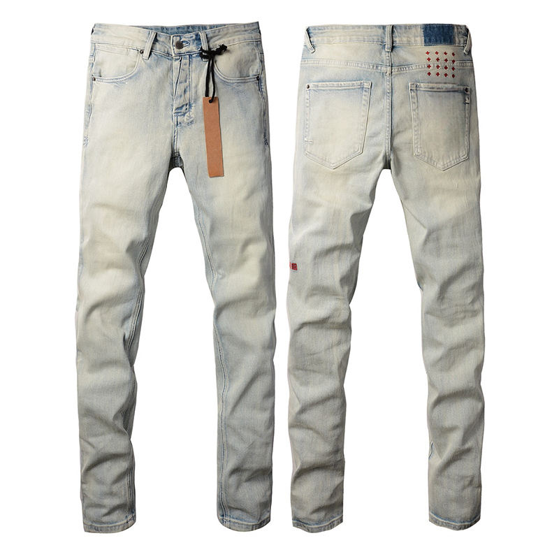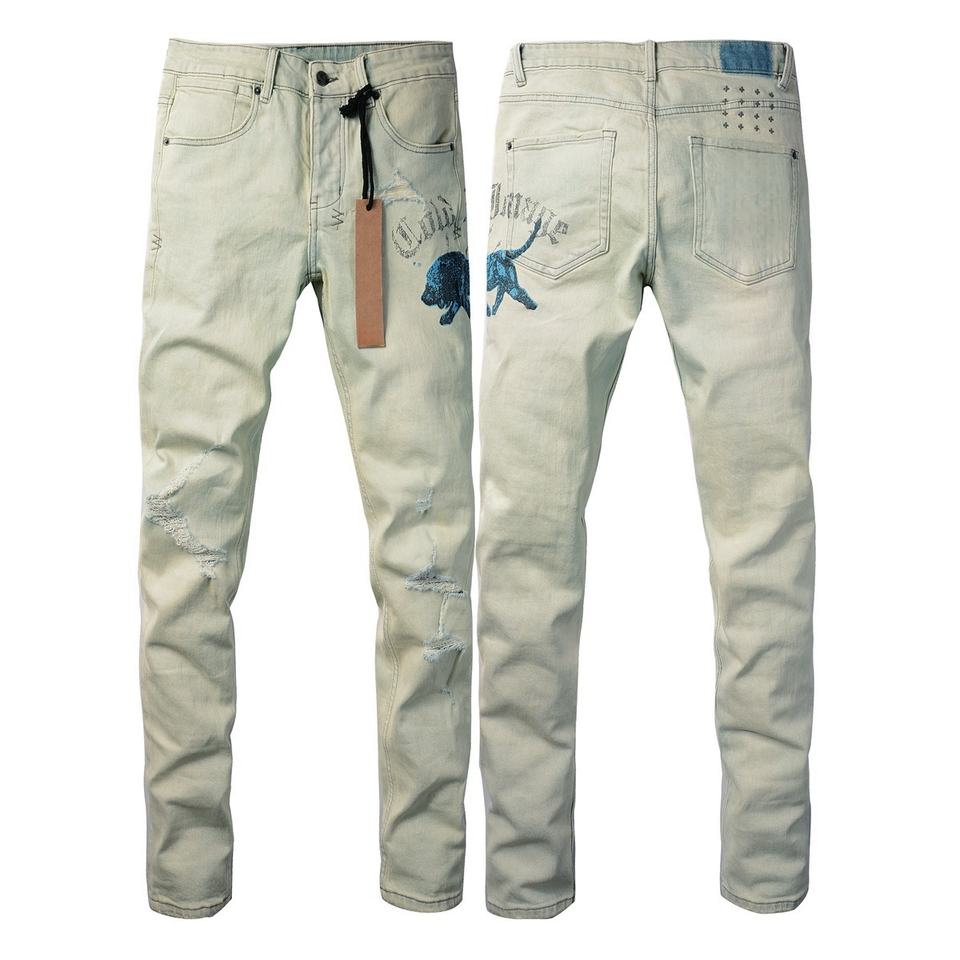 Wholesale Aussie Surfer Style Men's Jeans Straight Ripped Distressed Slim Fit Cotton Denim Pants With Button Pocket Washed Print