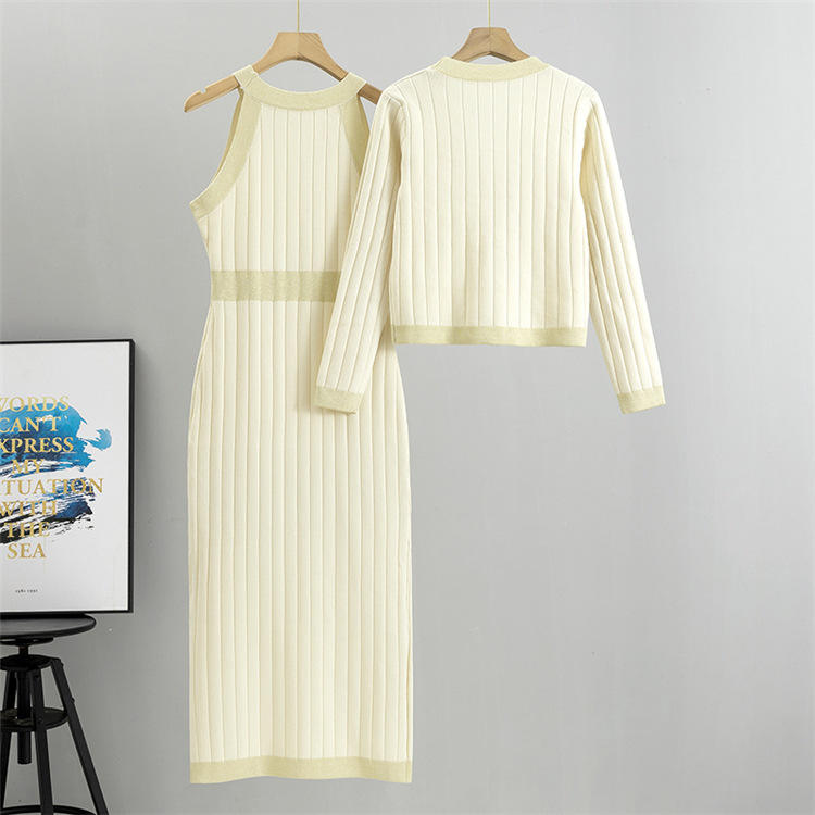 Wholesale Autumn Winter Dress and Sweater Two-Piece V-Neck Jacket Knitted Vest Dress Lady Designer Knitted Skirt Sets Women