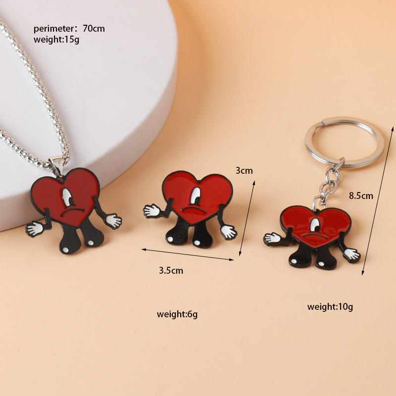 Collana all'ingrosso cattivo coniglio personalizzato collana cuore rosso Kpop portachiavi collana spilla per i fan dell'esercito