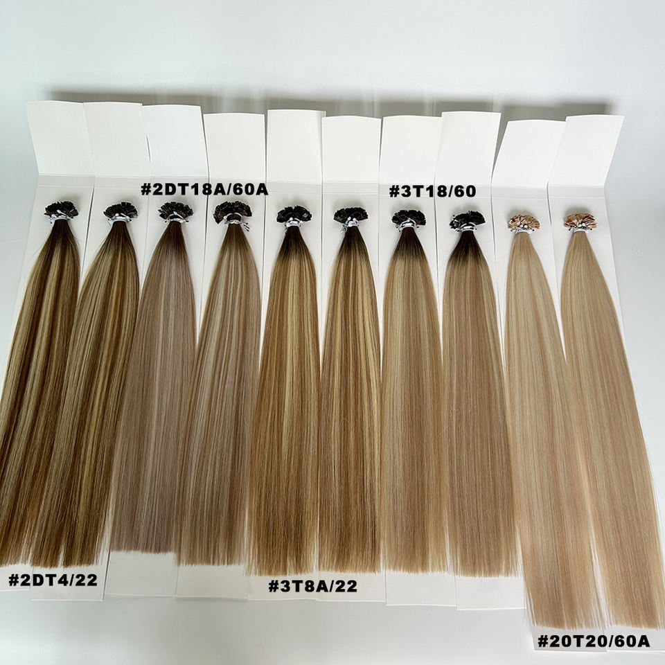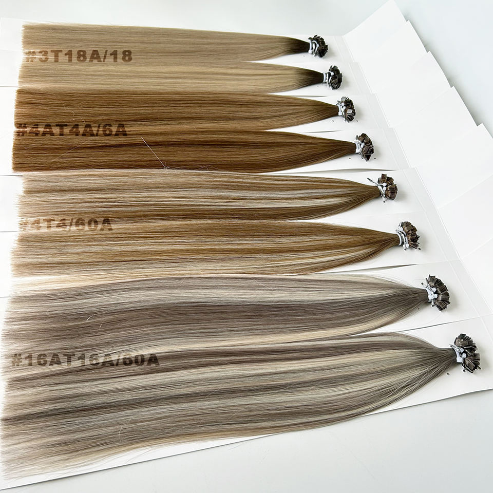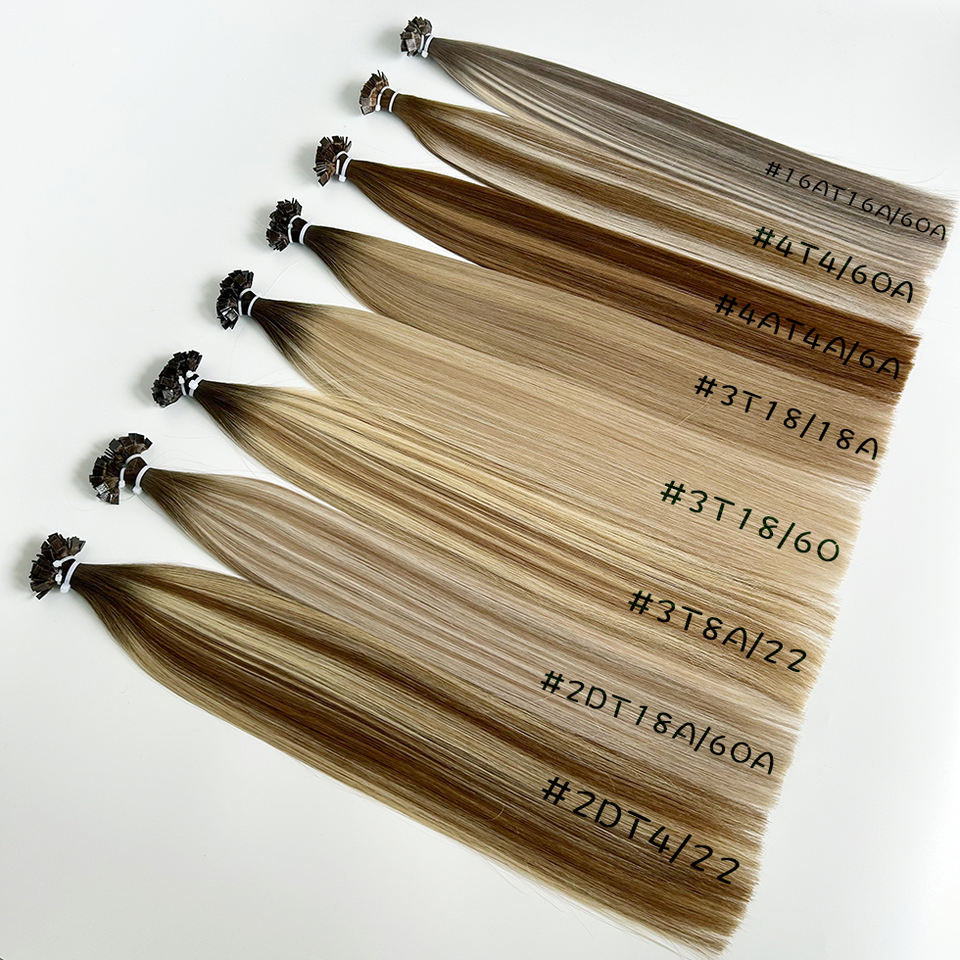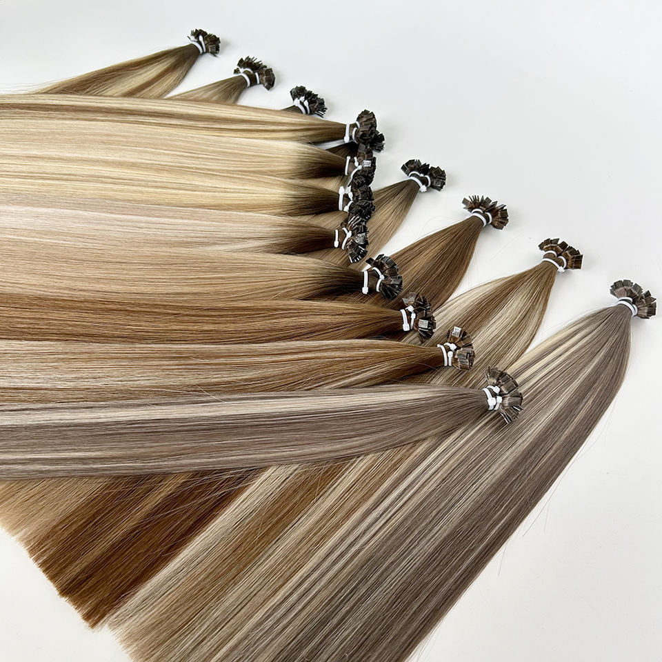 Estensioni di Capelli Umani Remy con Cheratina Pre-Incollata, Punta Piatta, Colore Balayage, 50g-MOQ, Vendita all'Ingrosso