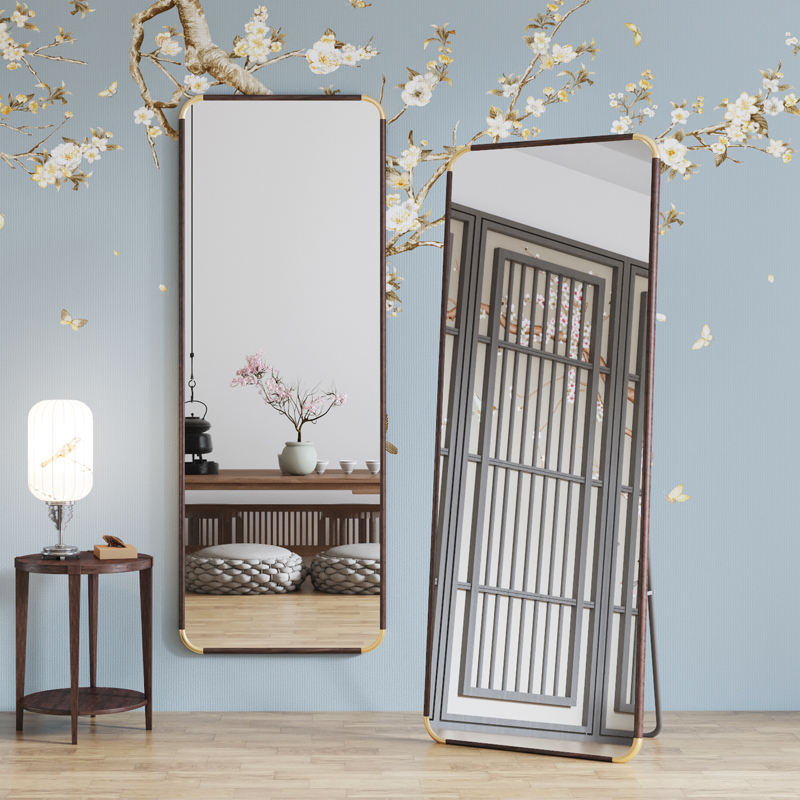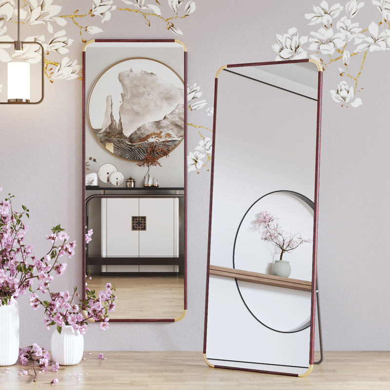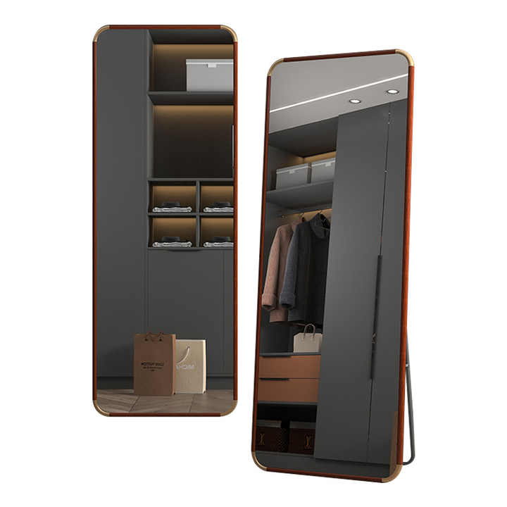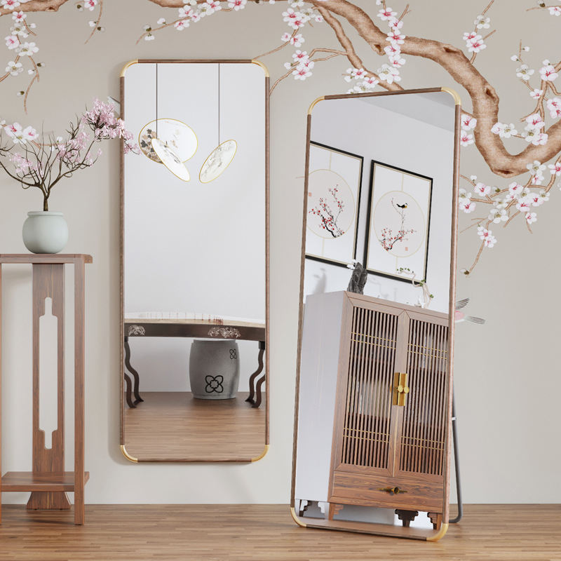 Commercio all'ingrosso barbiere full size in legno lungo pavimento in legno noce parete lunga decorazione per la casa soggiorno infrangibile trucco specchio