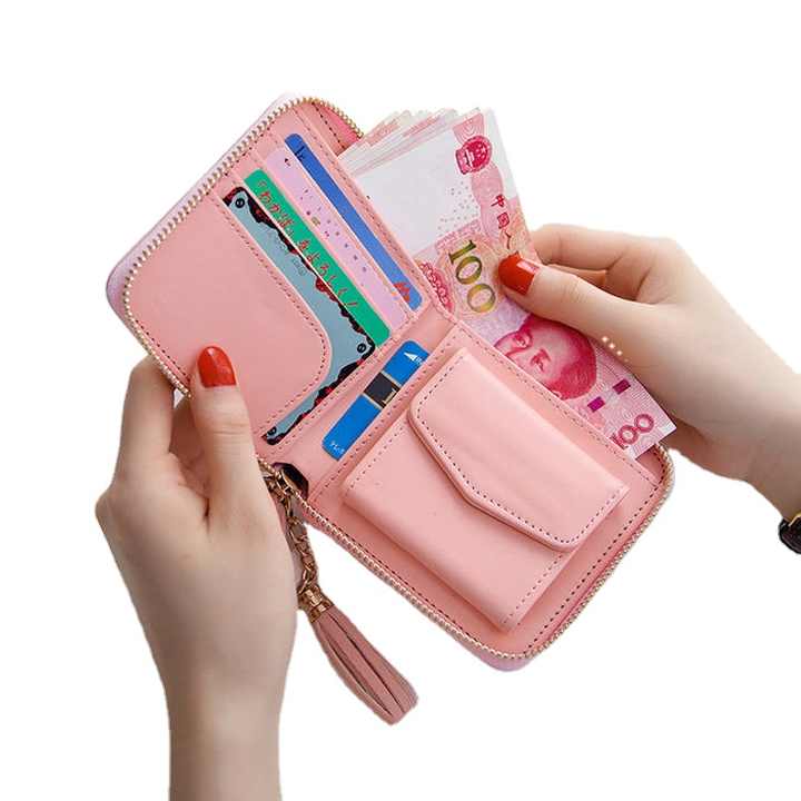 Portafoglio Corto in Pelle con Cerniera e Portamonete per Donna, Vendita all'Ingrosso