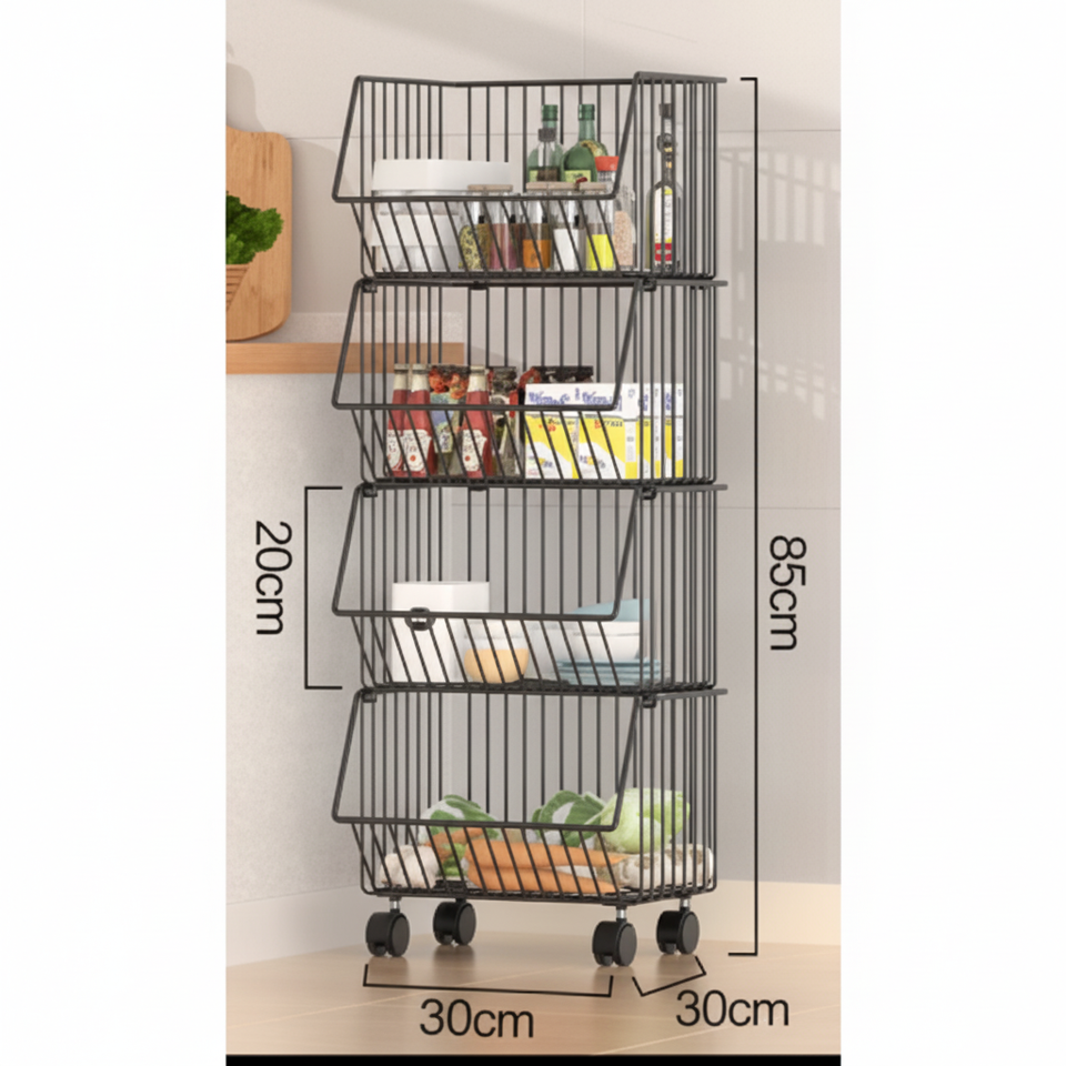 Wholesale Black Metal Vegetable Basket 30x30x85cm Storage Rack for Kitchen Organisation