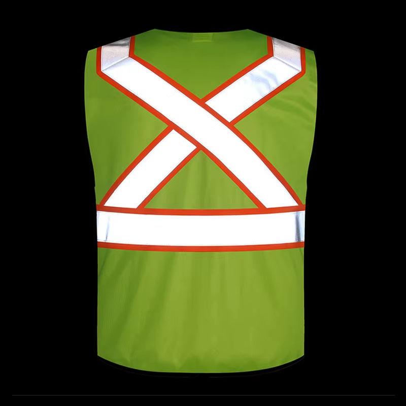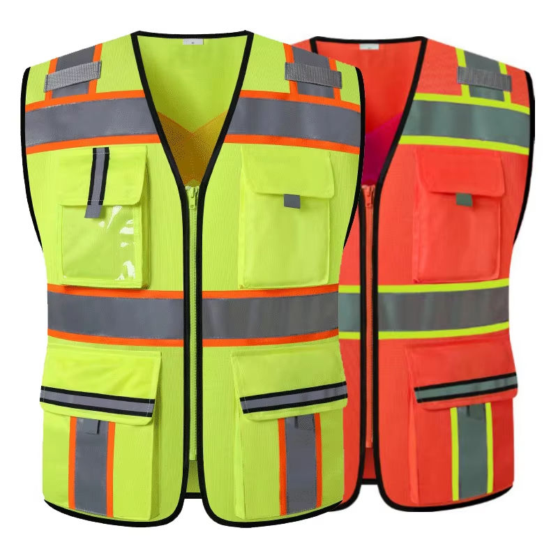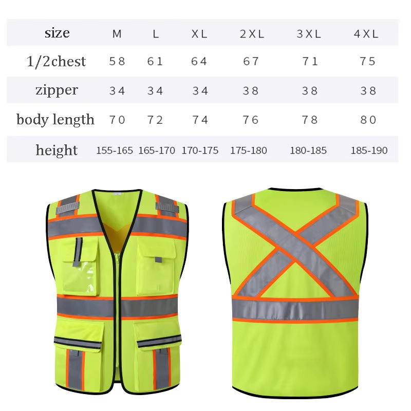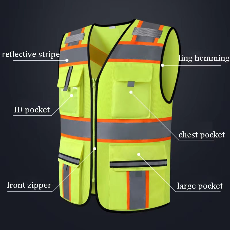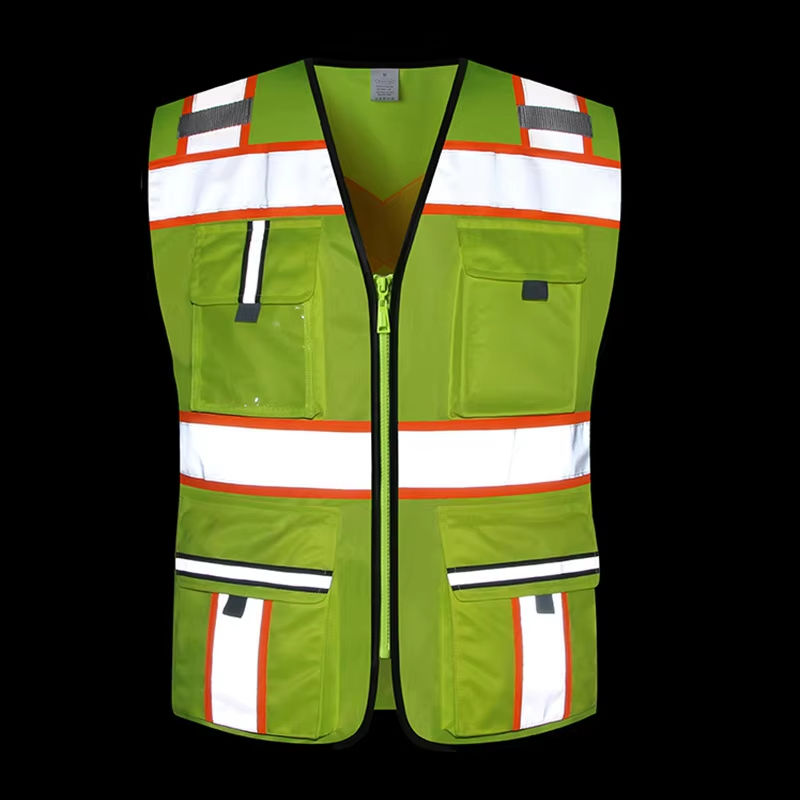 Gilet Riflettente Nero da Lavoro per Edilizia con Tasche e Cerniera Frontale, Traspirante, Alta Visibilità