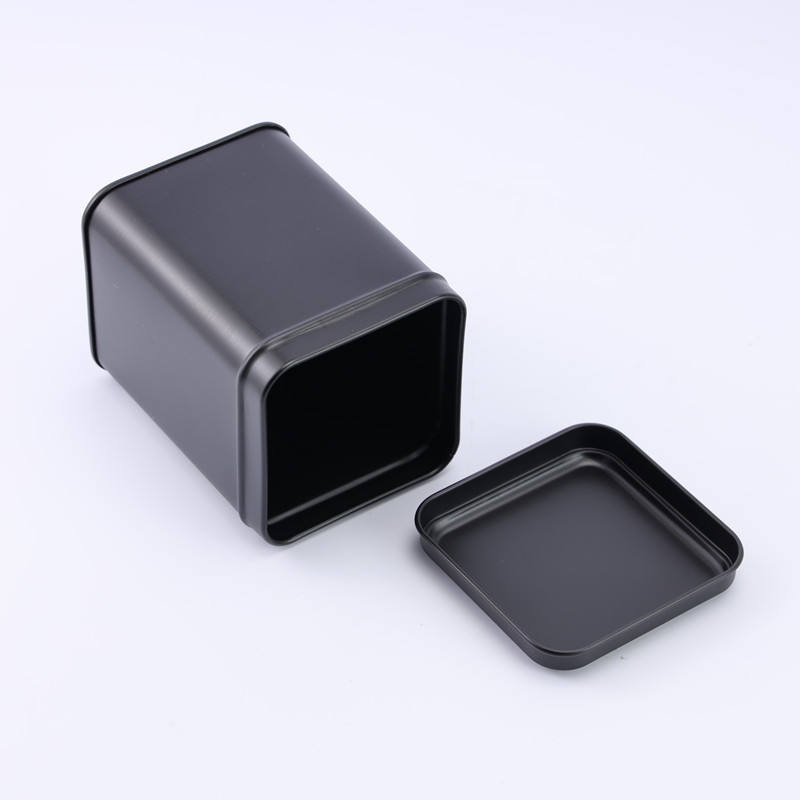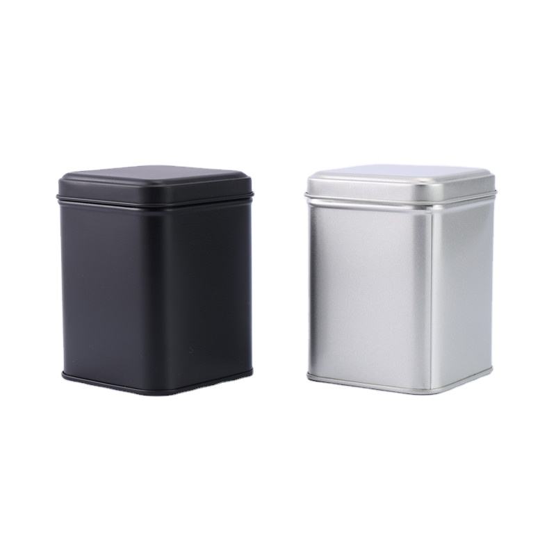Scatola di Latta Quadrata Nera per Tè, Contenitore per Erbe e Spezie, Vendita all'Ingrosso