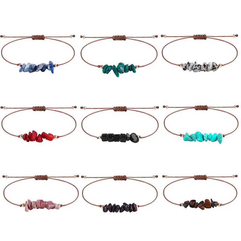 Wholesale Bohemian Irregular Gravel Natural Raw Stone Woven Adjustable Crystal Amethyst Rose Quartz Bracelet Anklets for Women