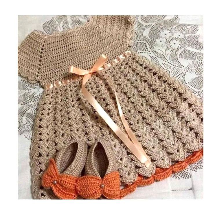 Wholesale Boutique Girl Cotton Knitting Frocks Design of Crochet Baby Dress With Crochet Shoes