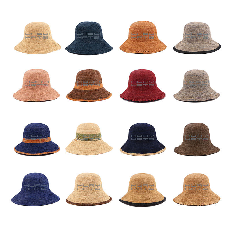 All'ingrosso marchio di cappelli di erba naturale rafia di lusso donna Cloche Sun Beach Chapeau rafia secchio di paglia all'uncinetto cappello con logo personalizzato