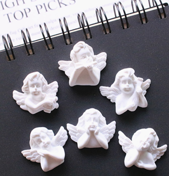 Ingrosso all'ingrosso stile barocco Pop bianco piccolo angelo del bambino in resina con ciondolo a forma di ala cabochon a fondo piatto per collana di gioielli a ciondolo