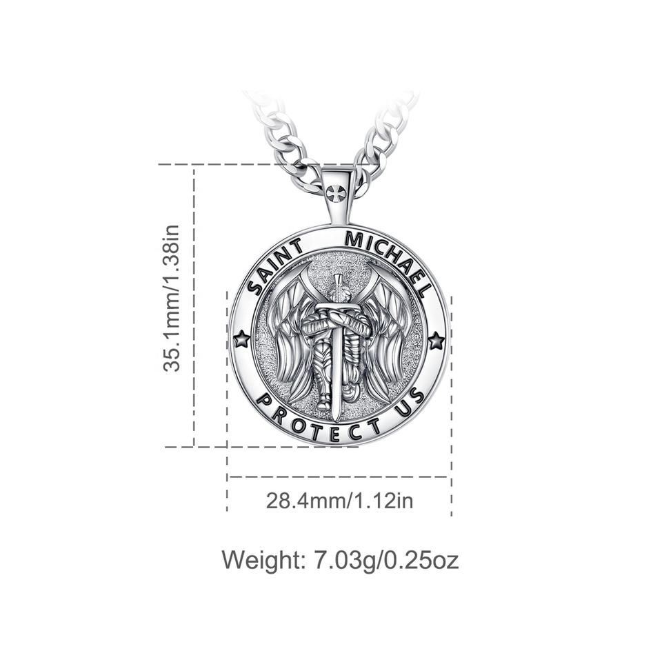Ciondoli all'ingrosso di San Michele con la scritta 'Proteggici', in rame placcato rodio, amuleto, gioielli religiosi e spirituali, collana da uomo
