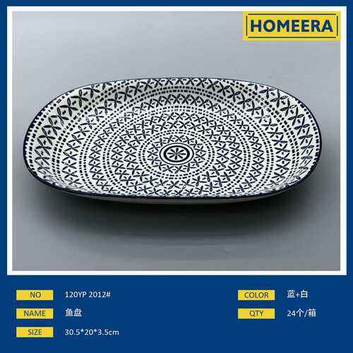 Wholesale Bulk Supplier of 125 Inch Blue and White Ceramic Oval Plate Restaurant Tableware 305x20x35cm Sets